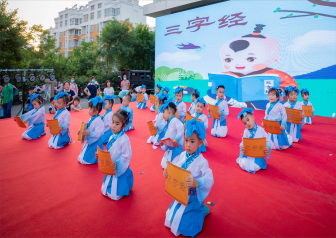 人之初,性本善,性相近。习相远,孩子们表演了三字经,中华民族是礼仪之邦我们的祖先很早就用简明易懂,琅琅上口的诗句,来对少年儿童进行启蒙教育.